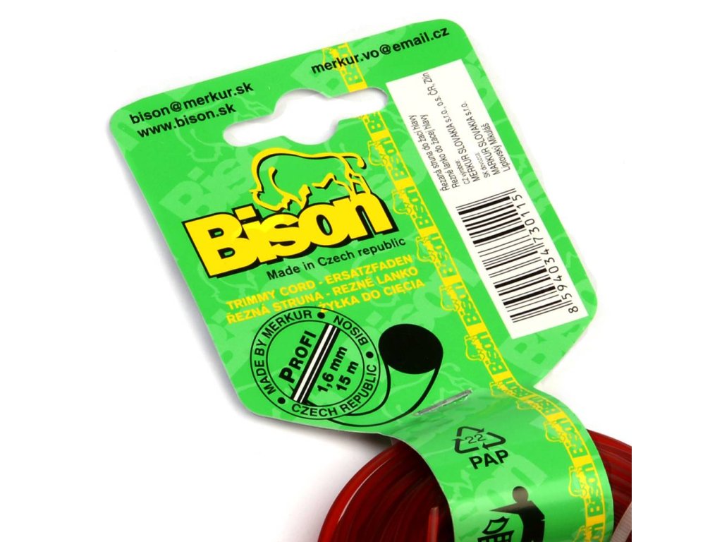 BISON PROFI je vysoce kvalitní profesionální žací struna kruhového průřezu červené barvy vyrobená ze zušlechtěného kopolyamidu 6/12, materiálu s trvanlivostí vysoce převyšující prodávané silonové a standardní nylonové struny na našem trhu.