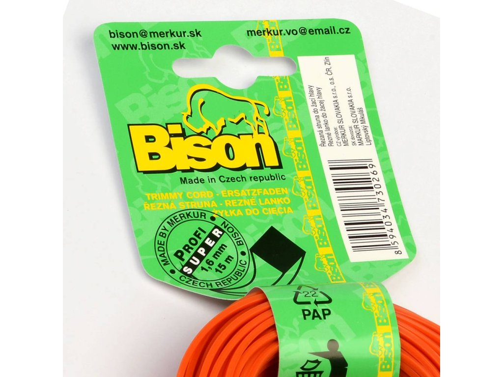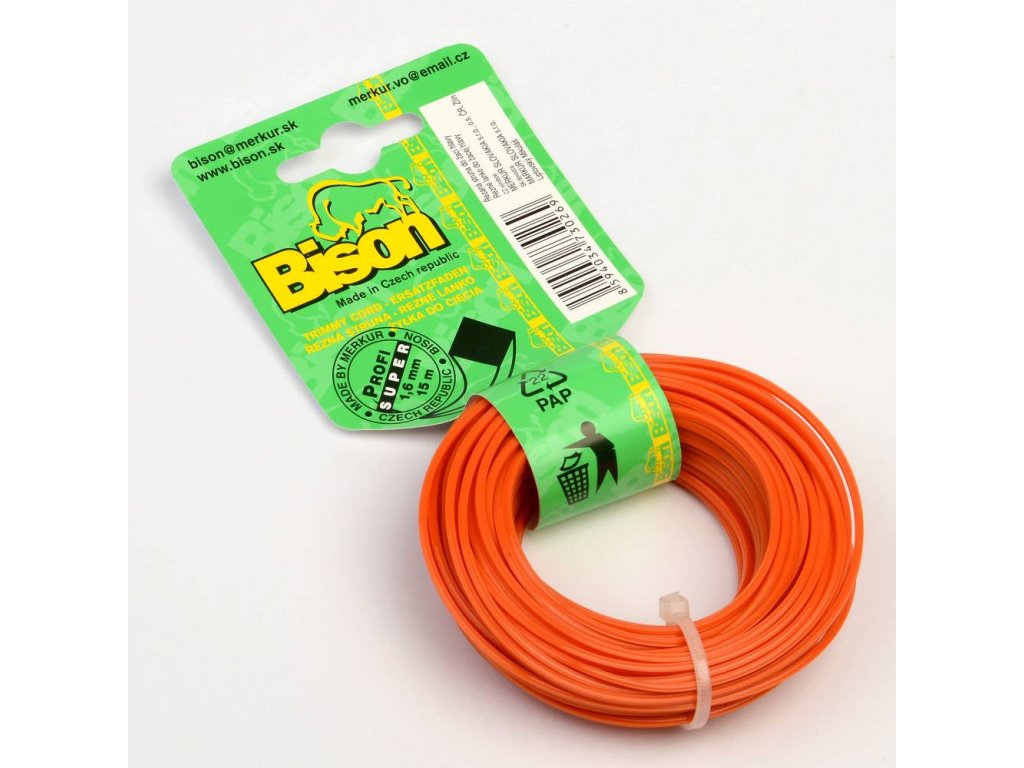 BISON SUPER PROFI je vysoce kvalitní profesionální žací struna čtvercového průřezu oranžové barvy vyrobená ze zušlechtěného kopolyamidu 6/12, materiálu s trvanlivostí vysoce převyšující prodávané silonové a standardní nylonové struny na našem trhu.