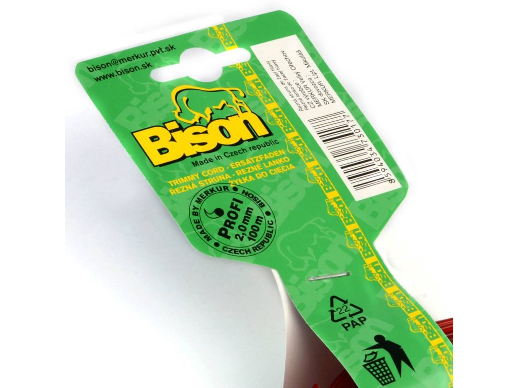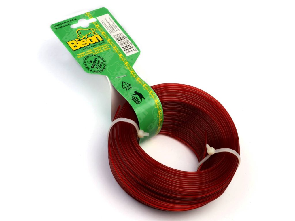 BISON PROFI je vysoce kvalitní profesionální žací struna kruhového průřezu červené barvy vyrobená ze zušlechtěného kopolyamidu 6/12, materiálu s trvanlivostí vysoce převyšující prodávané silonové a standardní nylonové struny na našem trhu.