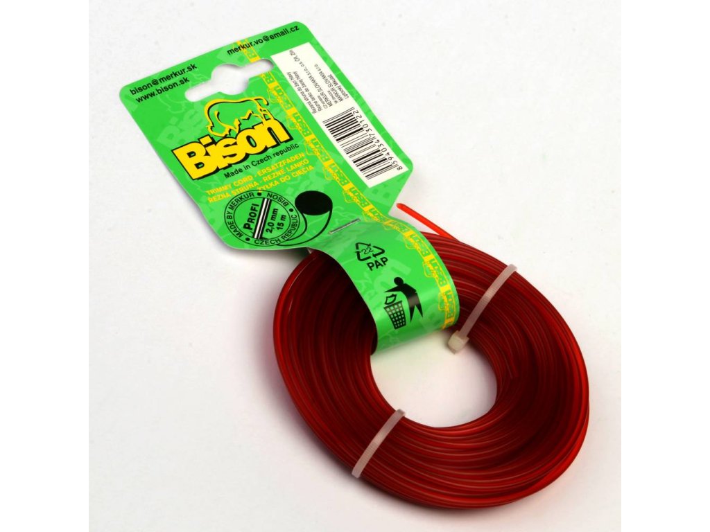BISON PROFI je vysoce kvalitní profesionální žací struna kruhového průřezu červené barvy vyrobená ze zušlechtěného kopolyamidu 6/12, materiálu s trvanlivostí vysoce převyšující prodávané silonové a standardní nylonové struny na našem trhu.