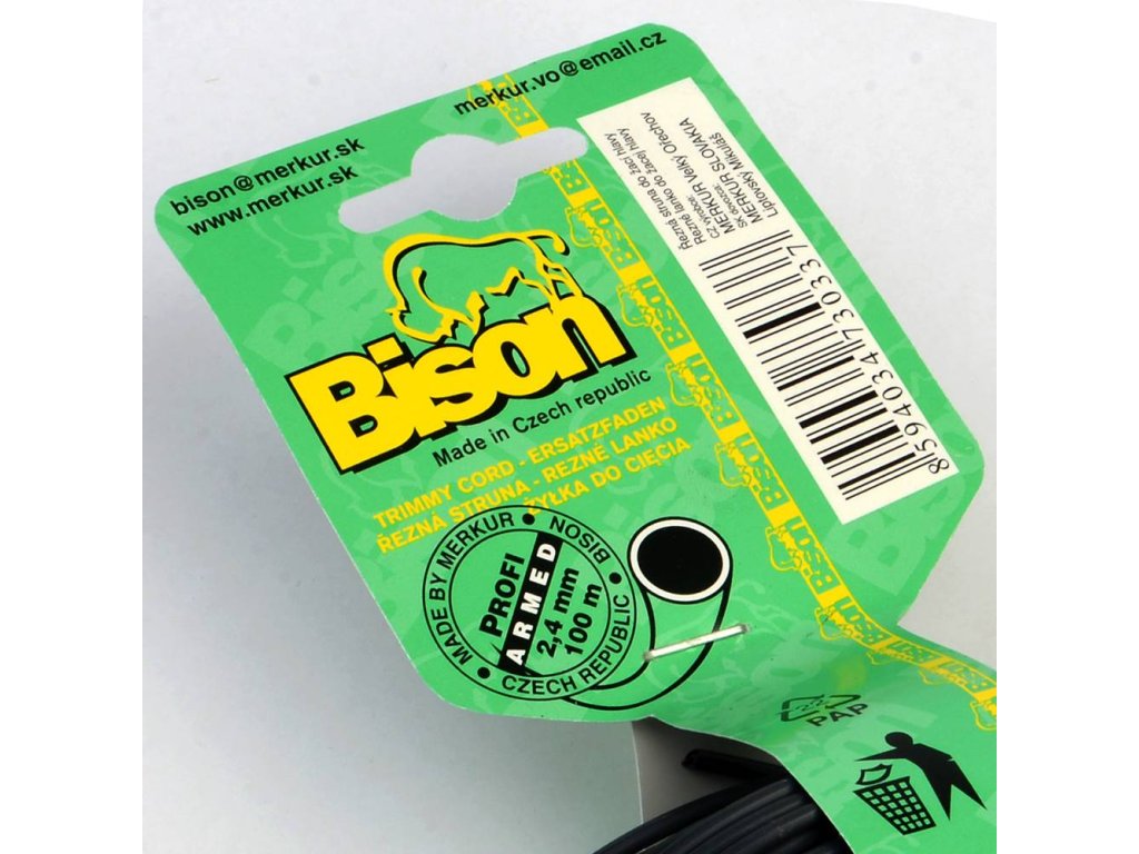 BISON je naše firemní značka prémiových profesionálních žacích strun pro křovinořezy a vyžínače, která byla založena v roce 1999 a je výsledkem slovensko-českého projektu. Vyrábí se v České republice z vysoce kvalitních surovin pocházejících z EU. Začínali jsme se třemi typy žacích strun a postupem času jsme sortiment rozšířili o další typy. Dnes nabízíme 6 typů žacích strun v 8 tloušťkách a ve třech délkových variantách balení, což představuje asi 67 variant výrobků.