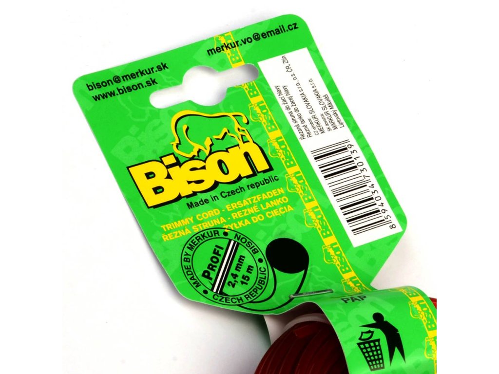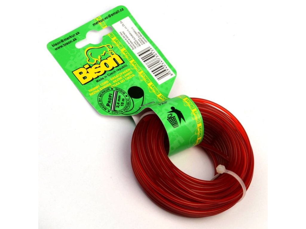 BISON PROFI je vysoce kvalitní profesionální žací struna kruhového průřezu červené barvy vyrobená ze zušlechtěného kopolyamidu 6/12, materiálu s trvanlivostí vysoce převyšující prodávané silonové a standardní nylonové struny na našem trhu.