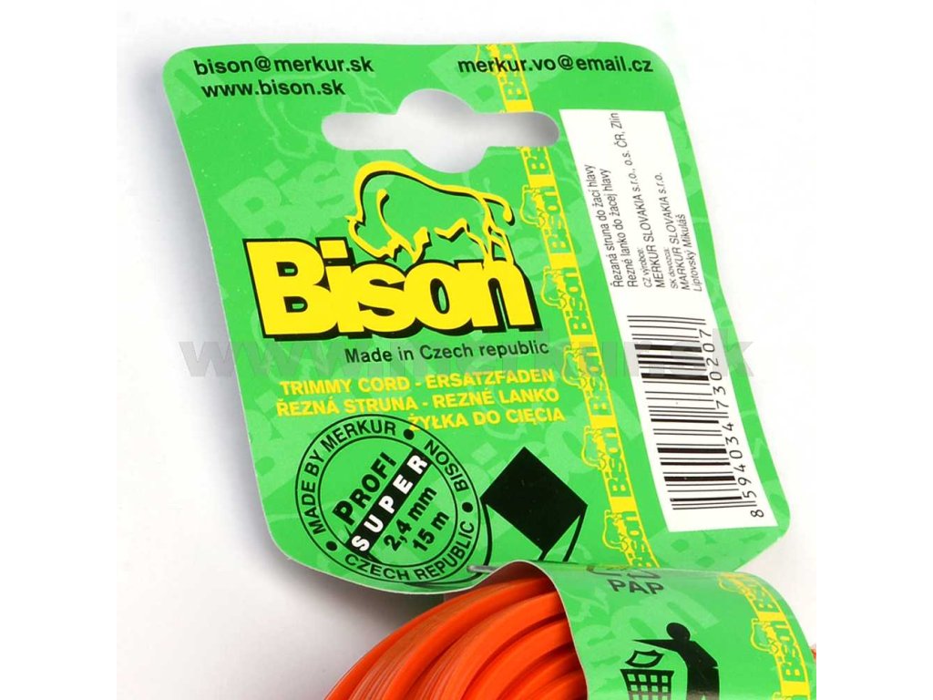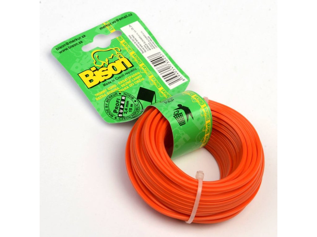 BISON SUPER PROFI je vysoce kvalitní profesionální žací struna čtvercového průřezu oranžové barvy vyrobená ze zušlechtěného kopolyamidu 6/12, materiálu s trvanlivostí vysoce převyšující prodávané silonové a standardní nylonové struny na našem trhu.