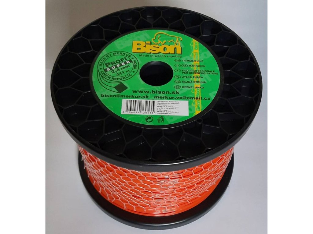 BISON SUPER PROFI je vysoce kvalitní profesionální žací struna čtvercového průřezu oranžové barvy vyrobená ze zušlechtěného kopolyamidu 6/12, materiálu s trvanlivostí vysoce převyšující prodávané silonové a standardní nylonové struny na našem trhu.