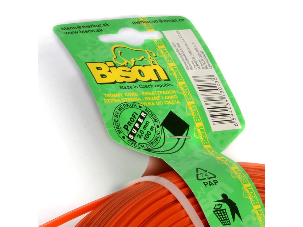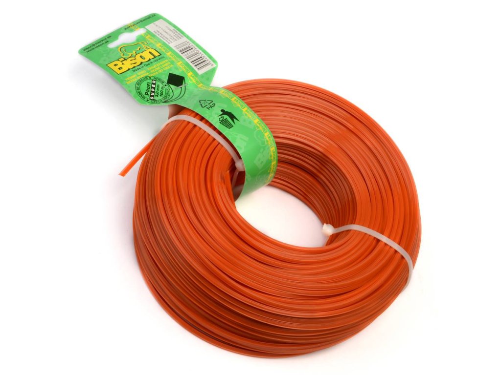 BISON SUPER PROFI je vysoce kvalitní profesionální žací struna čtvercového průřezu oranžové barvy vyrobená ze zušlechtěného kopolyamidu 6/12, materiálu s trvanlivostí vysoce převyšující prodávané silonové a standardní nylonové struny na našem trhu.
